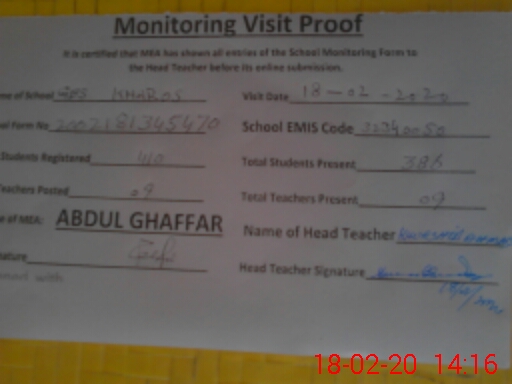 | Certified that this School was Inspected by the Undersigned MEA/DMO Today and the Information Stated Above is as Per Record. | |||||