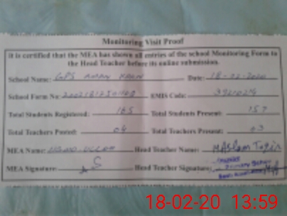 | Attendance Register | Head Teacher | MEA with School | Visit Proof |