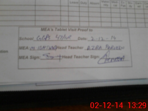 | Attendance Register | Head Teacher | MEA with School | Visit Proof |