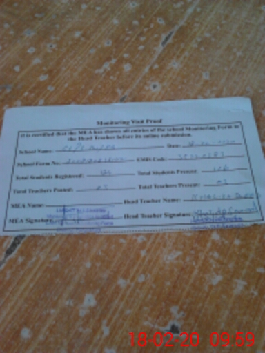 | Attendance Register | Head Teacher | MEA with School | Visit Proof |