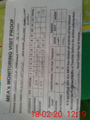 | Certified that this School was Inspected by the Undersigned MEA/DMO Today and the Information Stated Above is as Per Record. | |||||