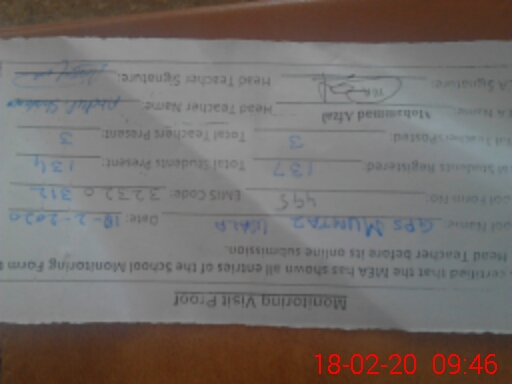 | Attendance Register | Head Teacher | MEA with School | Visit Proof |