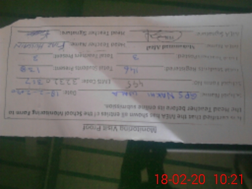 | Name: FI**** HU**** Designation: (School Headmaster's/Headmistress's) PST/PTC/JV Phone/Cell Number: 03**** |