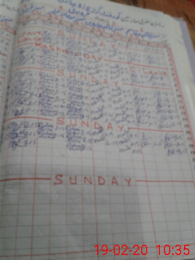 | CNIC | Full Name | Designation | R/C | Absence During Last Calender Month |
