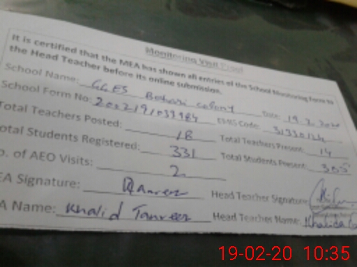 | Certified that this School was Inspected by the Undersigned MEA/DMO Today and the Information Stated Above is as Per Record. | |||||