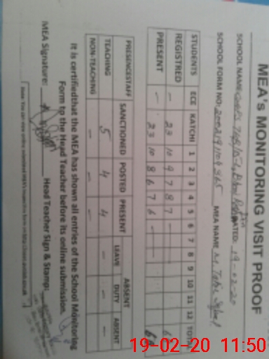 | Attendance Register | Head Teacher | MEA with School | Visit Proof |