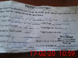| Name: As**** Me**** Designation: (School Headmaster's/Headmistress's) Pst Phone/Cell Number: 03**** |