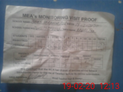 | Attendance Register | Head Teacher | MEA with School | Visit Proof |