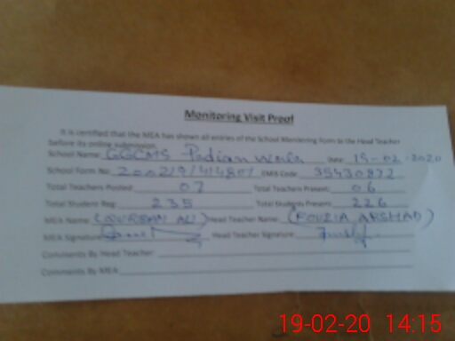 | EMIS Code: 35430872 | Name of School: GGCMS PADIAN WALA | |||