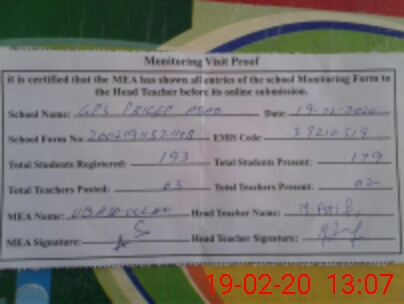 | Certified that this School was Inspected by the Undersigned MEA/DMO Today and the Information Stated Above is as Per Record. | |||||