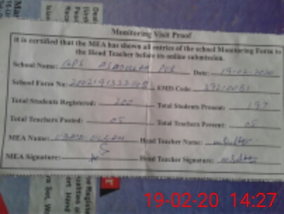 | Name: MU**** SU**** Designation: (School Headmaster's/Headmistress's) PST Phone/Cell Number: 03**** |