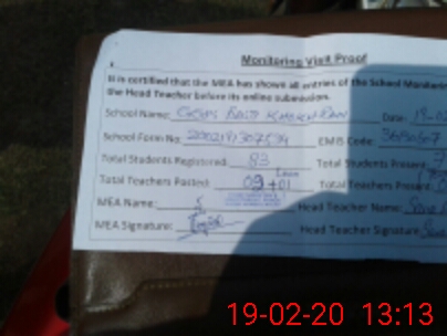 | Attendance Register | Head Teacher | MEA with School | Visit Proof |