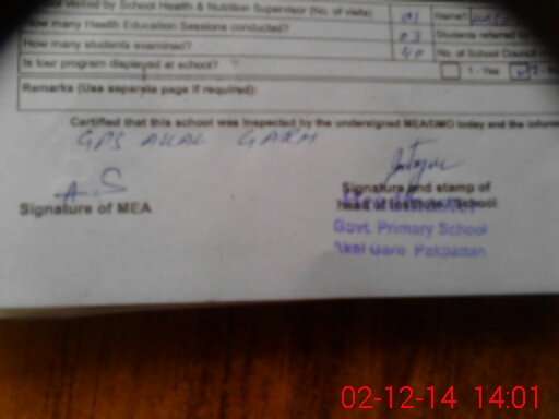 | Certified that this School was Inspected by the Undersigned MEA/DMO Today and the Information Stated Above is as Per Record. | |||||