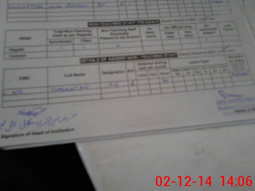 | Name: SI**** FA**** Designation: (School Headmaster's/Headmistress's) PST Phone/Cell Number: 03**** |
