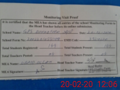 | EMIS Code: 39210220 | Name of School: GPS DHAKKO FARM CHAK NO. 36/SP SALAMAT PURA | |||