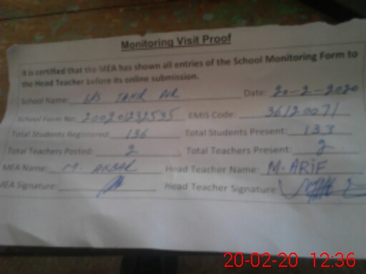 | EMIS Code: 36120071 | Name of School: GPS TAHIR PUR P/O & TEH.SHUJABAD | |||