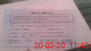 | Monitoring Date: 20-02-2020 | Start Time: 20-02-2020 11:27 AM | End Time: 20-02-2020 11:41 AM | Name of MEA: Za**** Iq**** BN**** | |