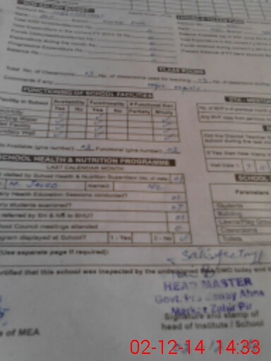 | Certified that this School was Inspected by the Undersigned MEA/DMO Today and the Information Stated Above is as Per Record. | |||||