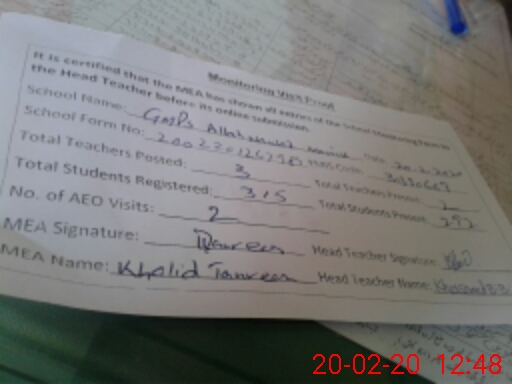 | Attendance Register | Head Teacher | MEA with School | Visit Proof |