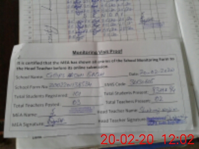 | Attendance Register | Head Teacher | MEA with School | Visit Proof |