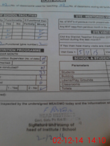 | Certified that this School was Inspected by the Undersigned MEA/DMO Today and the Information Stated Above is as Per Record. | |||||