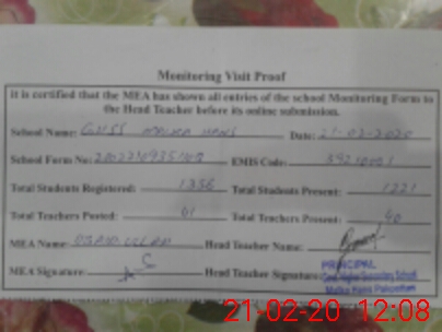 | Certified that this School was Inspected by the Undersigned MEA/DMO Today and the Information Stated Above is as Per Record. | |||||