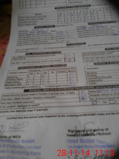| Certified that this School was Inspected by the Undersigned MEA/DMO Today and the Information Stated Above is as Per Record. | |||||