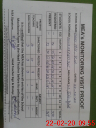 | Attendance Register | Head Teacher | MEA with School | Visit Proof |