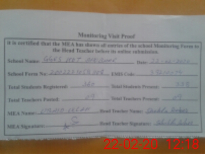 | Certified that this School was Inspected by the Undersigned MEA/DMO Today and the Information Stated Above is as Per Record. | |||||