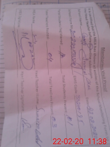 | EMIS Code: 33240195 | Name of School: GMPS ANAYAT SHAH | |||