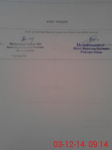 | Attendance Register | Head Teacher | MEA with School | Visit Proof |
