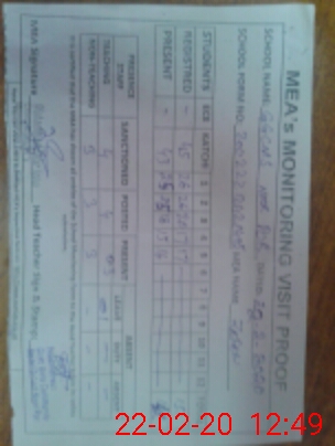 | Attendance Register | Head Teacher | MEA with School | Visit Proof |