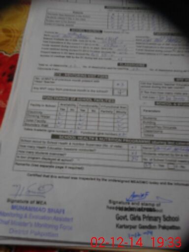 | Certified that this School was Inspected by the Undersigned MEA/DMO Today and the Information Stated Above is as Per Record. | |||||