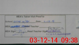 | Attendance Register | Head Teacher | MEA with School | Visit Proof |