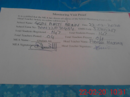 | EMIS Code: 32310217 | Name of School: GGPS BASTI ARAIN | |||