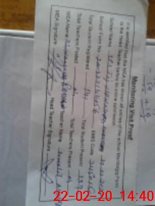 | Attendance Register | Head Teacher | MEA with School | Visit Proof |
