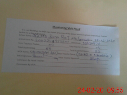 | EMIS Code: 35430978 | Name of School: GGCMS DERA RAJ MUHMMAD | |||