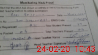 | Attendance Register | Head Teacher | MEA with School | Visit Proof |