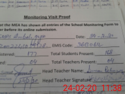 | Attendance Register | Head Teacher | MEA with School | Visit Proof |