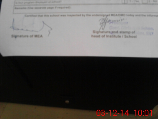 | Certified that this School was Inspected by the Undersigned MEA/DMO Today and the Information Stated Above is as Per Record. | |||||