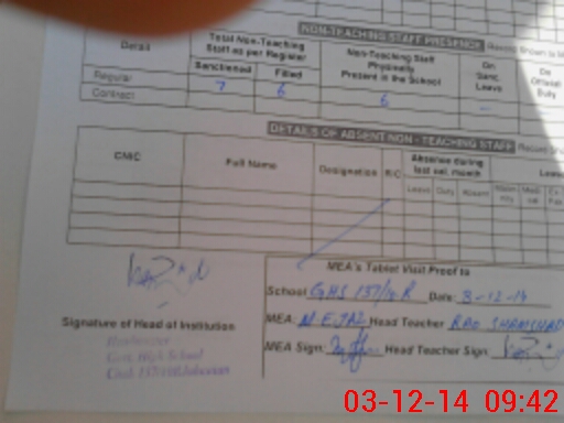| Attendance Register | Head Teacher | MEA with School | Visit Proof |