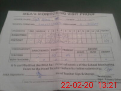 | Attendance Register | Head Teacher | MEA with School | Visit Proof |