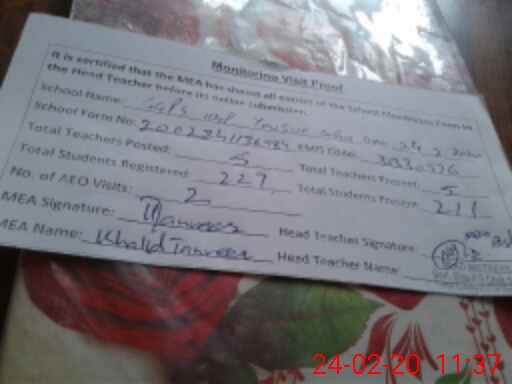 | EMIS Code: 31330576 | Name of School: GGPS CHAK 112/P YOUSAF COLONY | |||
