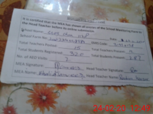 | Certified that this School was Inspected by the Undersigned MEA/DMO Today and the Information Stated Above is as Per Record. | |||||