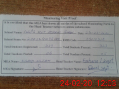 | Certified that this School was Inspected by the Undersigned MEA/DMO Today and the Information Stated Above is as Per Record. | |||||
