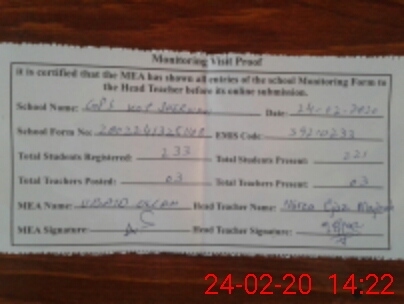 | Certified that this School was Inspected by the Undersigned MEA/DMO Today and the Information Stated Above is as Per Record. | |||||