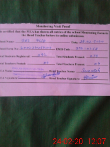 | EMIS Code: 39210258 | Name of School: GES CHAK NO. 95 /D | |||