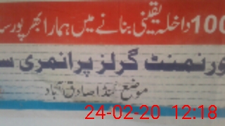 | District: RAHIMYAR KHAN | Tehsil: SADIQABAD | Markaz: PANDIT DARI-FEMALE | Level: Primary | |