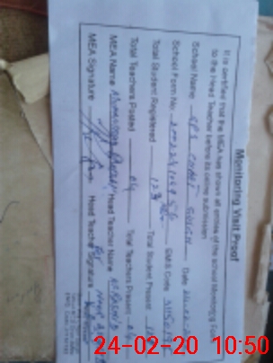 | Attendance Register | Head Teacher | MEA with School | Visit Proof |
