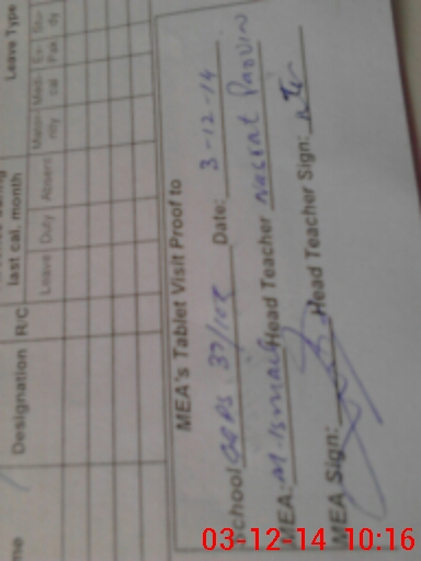 | Attendance Register | Head Teacher | MEA with School | Visit Proof |